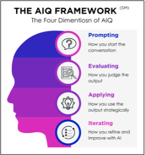 The AIQ Framework helps people use AI with confidence. It focuses on asking better questions and making better decisions. It creates a learning culture where teams test ideas, share what works and keep improving together. And it connects people and technology in ways that make results stronger and more reliable.